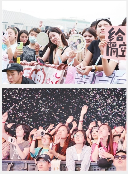 为期3天的音乐节超燃超带感,摇滚炸场、偶像唱跳、经典流行,汇集成沸腾的欢乐海洋。当耳熟能详的旋律响起,乐迷们不约而同地跟随音乐摇摆、合唱,声浪一阵高过一阵。其中,两度来太的回春丹乐队,以一首《鲜花》引发全场大合唱,乐迷们的歌声甚至盖过伴奏,极具感染力。