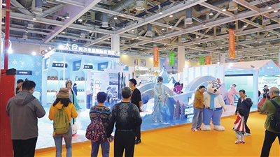 位于苏州国际博览中心C馆06展位的太仓阿尔卑斯国际度假区展馆,占地240平方米,融合冰雪运动、科技互动、文创体验,巧妙运用冰雪世界的自然意象,打造了一个视觉冲击力强、互动参与度高的主题空间,成为本届文博会备受瞩目的焦点。展馆内,专业雪具陈列与文创展柜相得益彰,而最具人气的当数VR沉浸式滑雪体验区和互动滑雪游戏机。“滑雪体验非常真实,立体感强。”刚体验完VR滑雪的吴先生兴奋地表示。此外,展馆内还设置了AI机器人昆曲演绎环节,将传统艺术与现代科技完美结合,展现出太仓在文旅融合方面的创新探索。