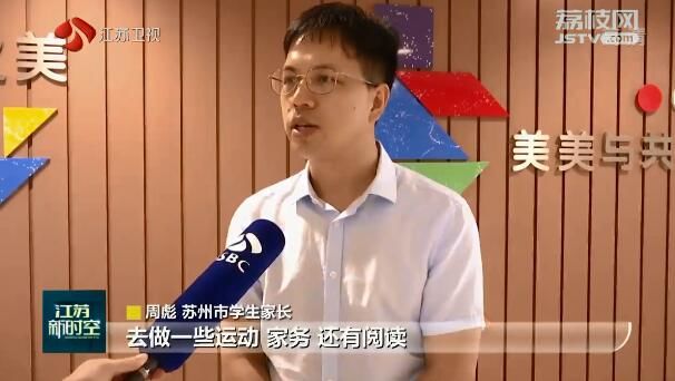 苏州市学生家长周彪说:“就是说让孩子去做一些运动 家务,还有阅读,包括发展一些他自己个人的一些兴趣爱好也好,我觉得对于孩子成长的多样性来讲也是有好处的。”