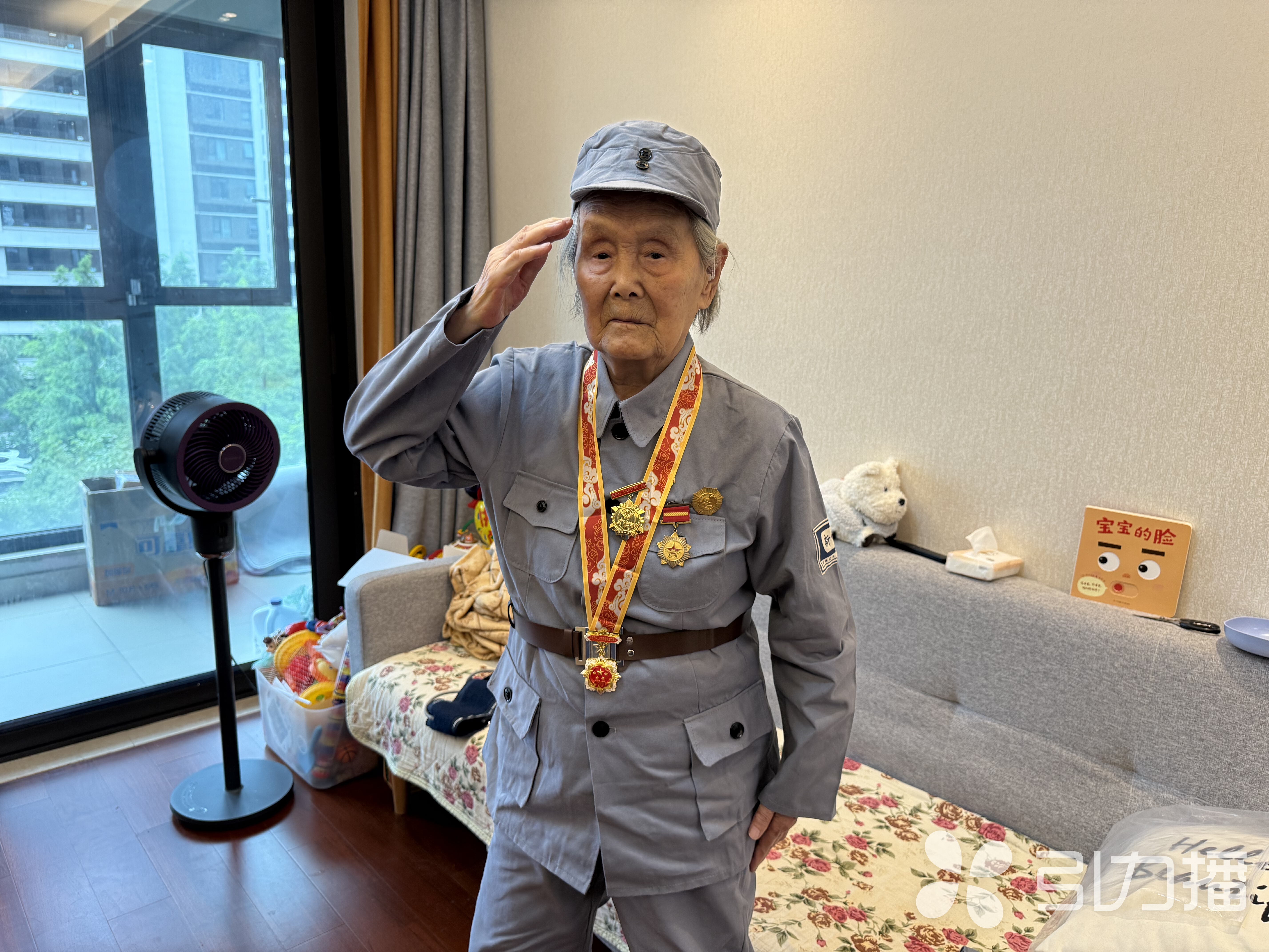 百岁抗战老兵穿上崭新的新四军军服。姜熠苏报融媒记者 时玥 姜熠/摄制