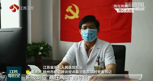 江苏省苏北人民医院院长、扬州市新冠肺炎定点收治医院临时党委书记束余声说:“我们广大的医护积极响应‘两在两同’的号召,在临时党委的带领下,到病人群众需要的地方去,用实际行动为党旗增辉添彩、践行初心。”