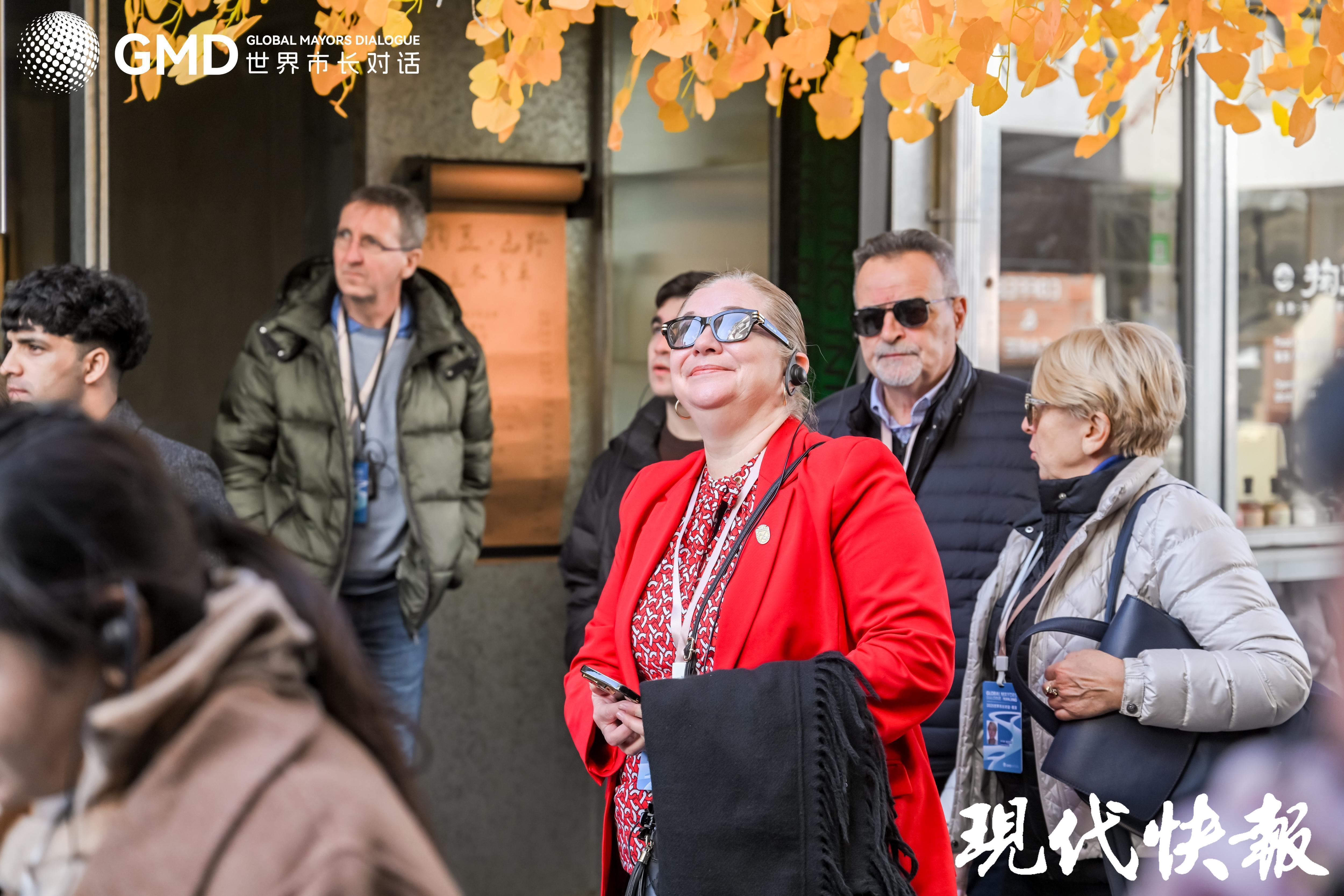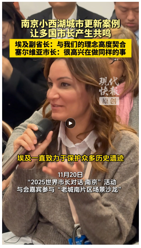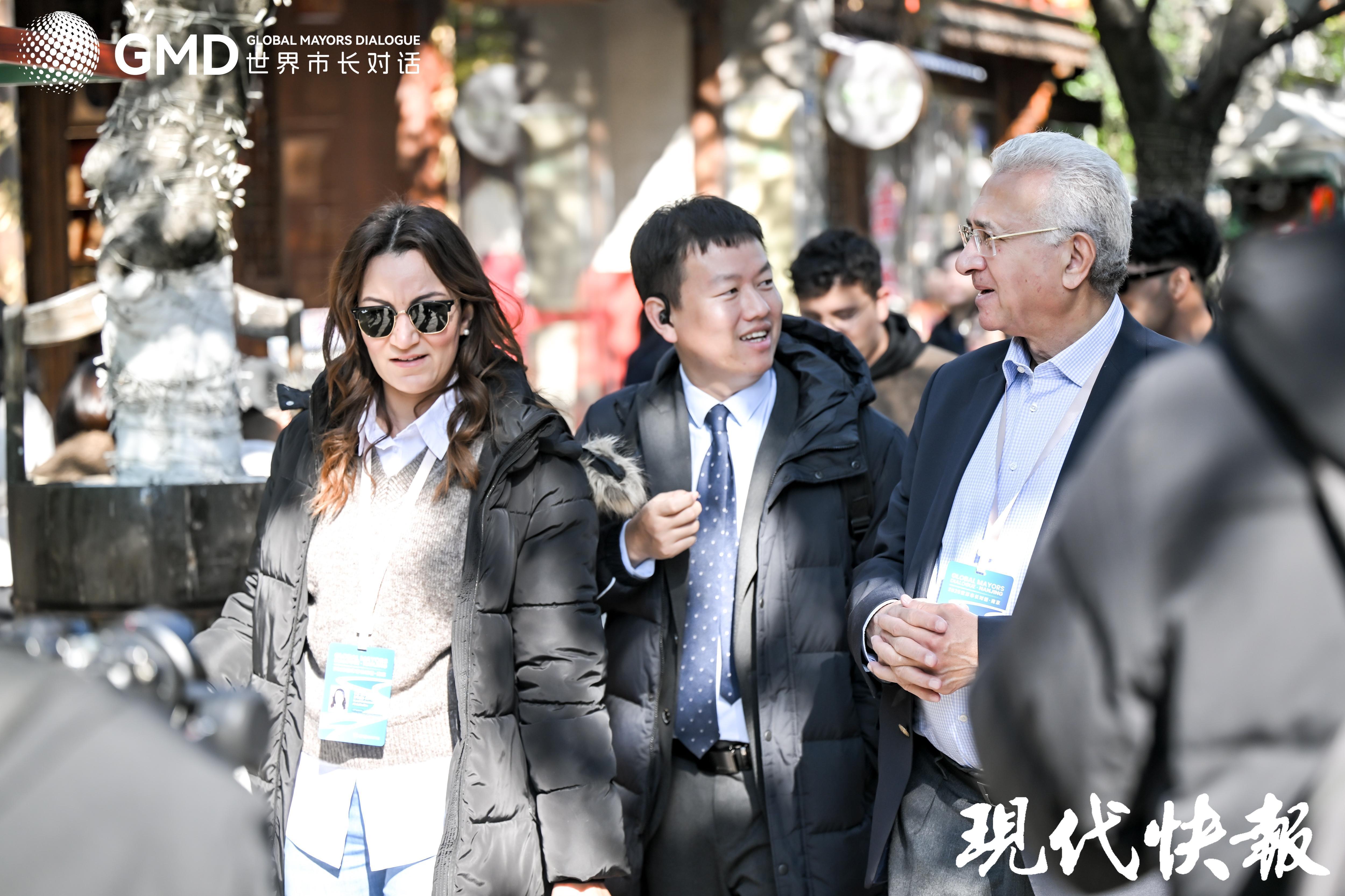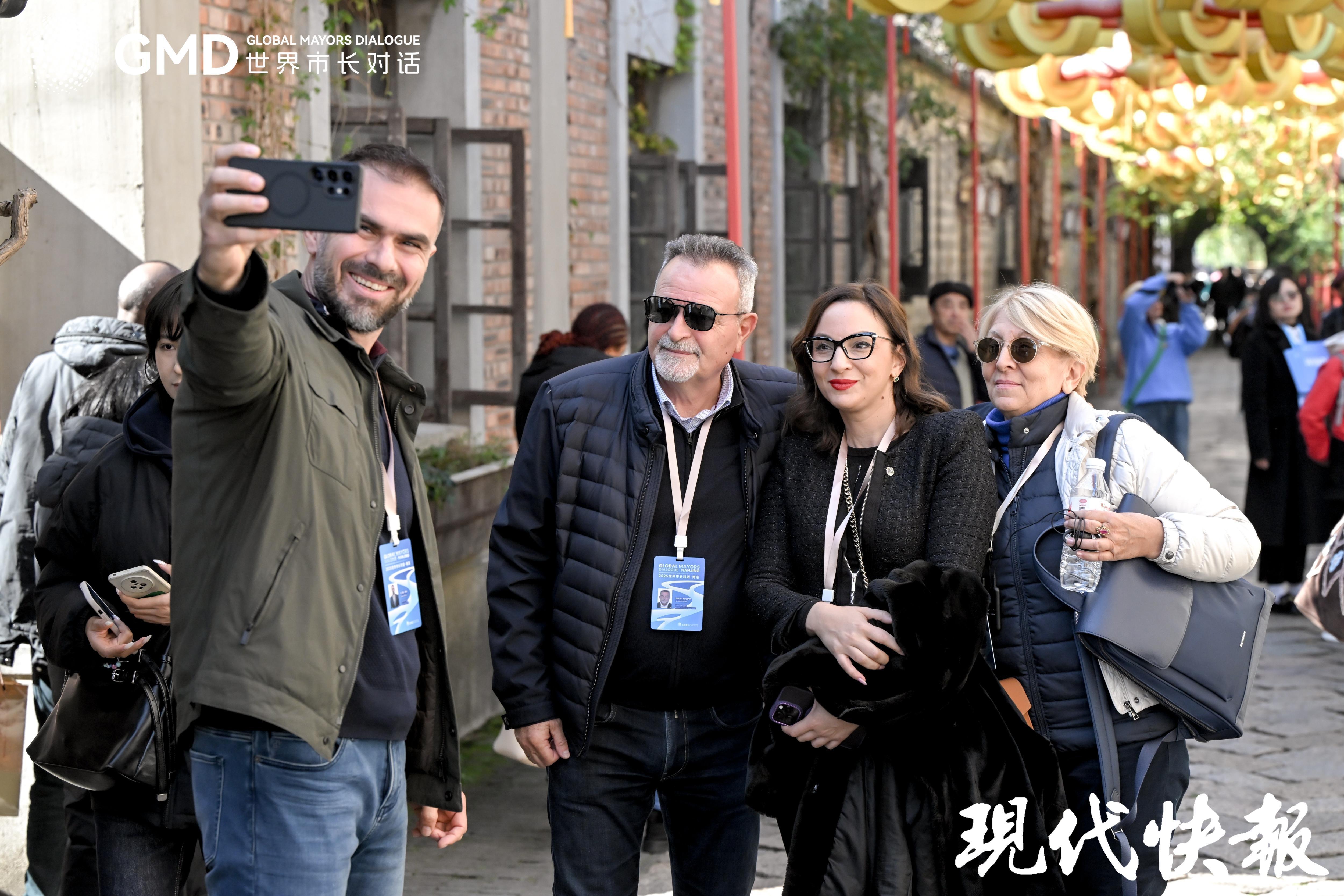 11月20日,以“扬子潮涌 文明共启”为主题的“2025 世界市长对话・南京”活动中,来自埃及、意大利、塞尔维亚、马来西亚等国的与会嘉宾走进小西湖、老门东,参与“老城南片区场景沙龙”,通过一场沉浸式City Walk,实地观摩历史城区保护与更新的“中国方案”,分享各国实践经验,共探老城活化新路径。