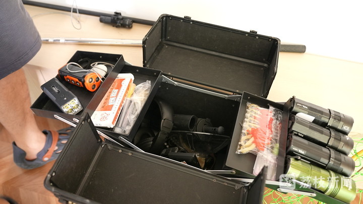 抵达现场后,装备与经验的配合成为救援的关键。常昶的硬壳密码箱里,分层装着各种“寻宠利器”,包括四眼灯珠手电筒、声波驱赶器、热成像仪、声波探测仪等。团队最常用也最有效的工具是一张长柄网,可以通过在狭长洞口一端堵截、另一端驱赶的方式,安全兜救被困动物。
