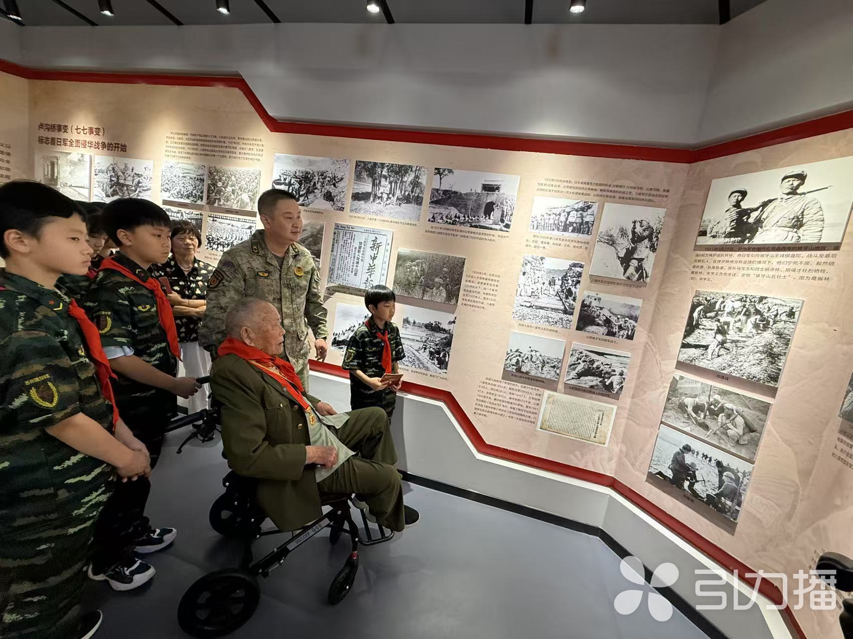 “去了一个班,就只剩我一个人活着回来。”停留在侵华日军签字投降的那张影像前,熟悉的画面让老人瞬间眼泛泪光。“我们八路军,打跑了日本人,打得日本人晕头转向!”断断续续的话语虽然沙哑,却字字有力铿锵,仿佛让人置身于硝烟弥漫的战场。他先是颤巍巍竖起拇指,又数次试图从轮椅中站起,最终挺直脊梁,以一个用尽全力的军礼献给那段血与火的岁月,全场肃然动容。红领巾们屏息聆听,“他颤抖的手敬礼时,我懂了什么是‘脊梁’。”负责讲解的许博秋对讲解词的理解又加深了一层。