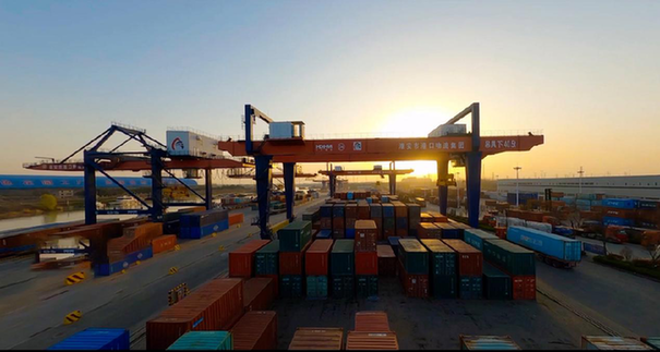 淮安新港内堆满了发往各地的货物(图片来源:淮安市委网信办)