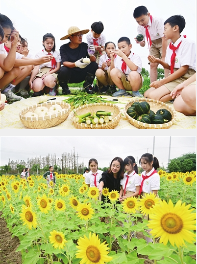 日前,弇山小学组织学生来到城厢镇新农村,开展“粮食节约 人人有责”世界粮食日主题教育活动。学生们通过丈量稻穗、创作稻穗画、丰收合影、游览向日葵花海等活动,感受好“丰”景。 记者 计海新 摄
