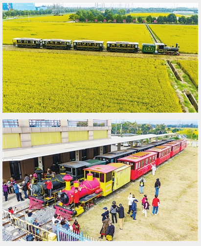 城厢镇东林村“田园新干线”观光小火车吸引众多游客体验。金秋时节的东林村,金黄的稻田、渐次变红的水杉与远处的农庄相衬映,构成了一幅自然生态画卷,吸引游客前来休闲游玩。(记者 计海新 摄)