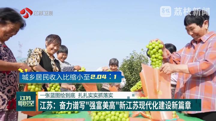 这五年,江苏“百姓富”的成果更加丰硕,城乡居民人均可支配收入突破5.5万元,城乡居民收入比缩小至2.04∶1;全省城镇新增就业年均超135万人、稳居全国第二;通过扎实推进农业农村现代化,粮食生产连年丰收,以占全国3.2%的耕地生产全国5.5%的粮食,端稳了全省8500万人的饭碗,脱贫攻坚成果不断巩固拓展。