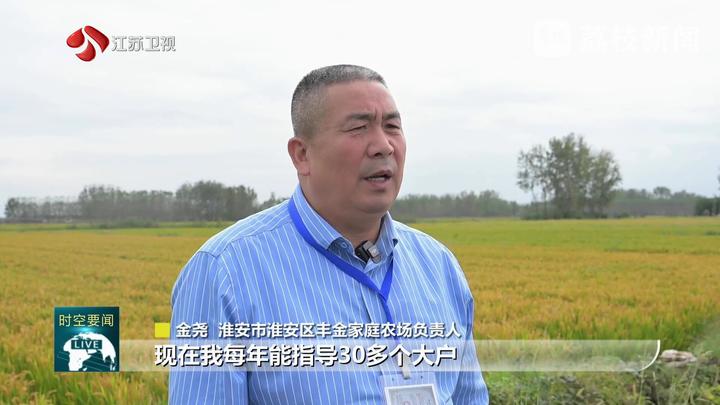 淮安市淮安区丰金家庭农场负责人金尧说:“我们学到的都是先进技术,现在我每年能指导30多个大户,今年的水稻马上就收割了,每亩产量比往年要高200斤到300斤。”
