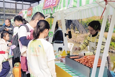 活动现场还设置了“江潮听风市集”,本土美食与工会会员企业产品共同形成“体育+经济”的消费新场景,选手们在赛事间隙逛市集、尝特色,感受璜泾本土产业活力。