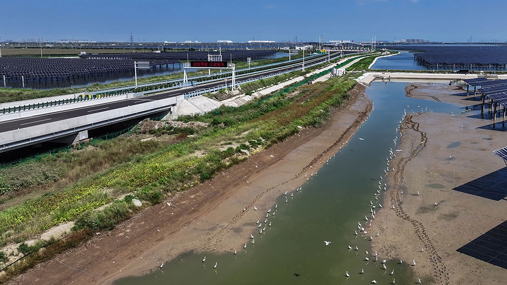 驱车驶入连宿高速一期徐圩收费站,一幅生机盎然的画卷在眼前铺展:道路两旁绿草如茵,各色小花随风摇曳,为边坡织出一道绵延的彩色镶边。更引人注目的是,不远处的稻田、鱼塘上空,成群的白鹭翩跹起舞,它们时而优雅地掠过崭新护栏,时而停歇在边坡水沟旁休憩。这流动的风景,与翻滚的稻浪、微波粼粼的湖面、平整的路面相互交融,成为连宿高速生态建设理念最生动的诠释。
