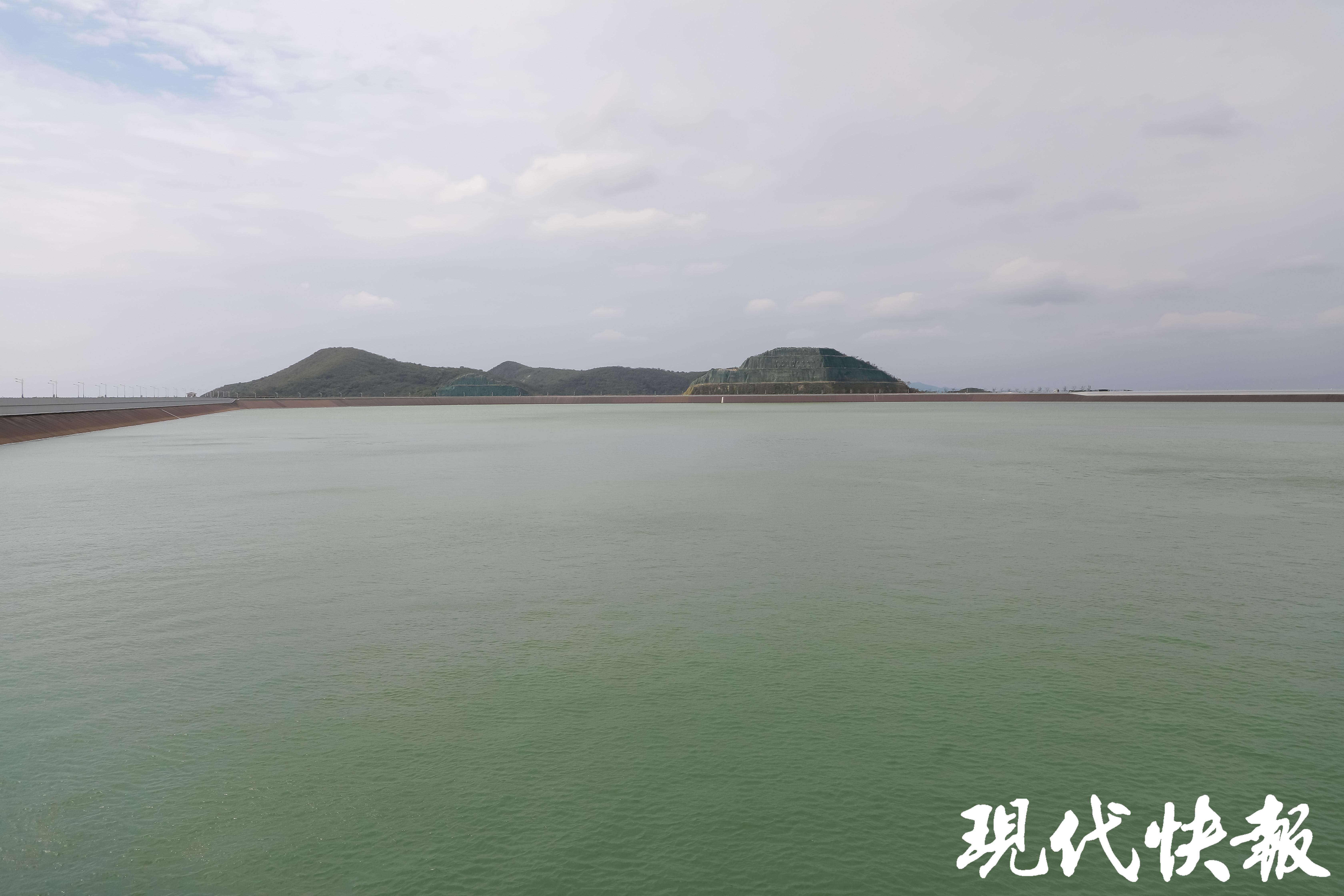 站在上水库,一眼望过去,水面宽阔清澈,空气宜人。句容抽水蓄能电站上水库坝高达182.3米,相当于60层楼的高度,上水库蓄水量1707万立方米,相当于1.2个西湖的蓄水量,创造了多项行业纪录,在业内甚至有着“百科全书”的称号。
