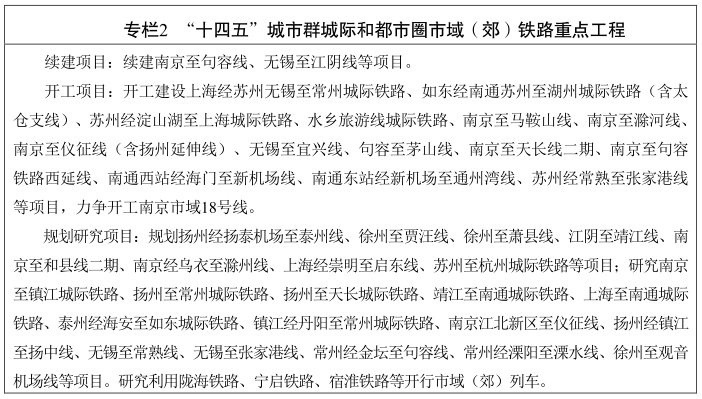 同时打造苏锡常都市圈、南京都市圈、徐州都市圈城市群城际和都市圈市域(郊)铁路网。
