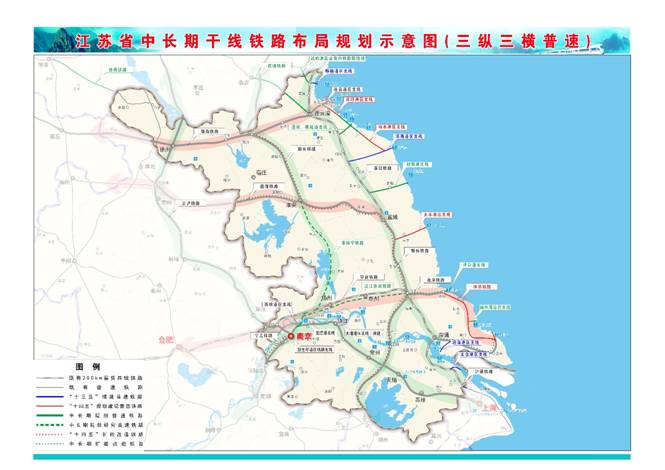 “三纵”通道。京沪通道是国家普速铁路区际快捷大能力通道的组成部分,依托京沪铁路,对外连接华北地区,紧密衔接内蒙古满洲里、二连浩特等进入远东地区和欧洲的重要口岸。沿海通道是国家面向“一带一路”国际通道的组成部分,由连盐铁路、新长铁路盐城至宜兴段、沪苏通铁路等构成,联系东部沿海地区,是海铁联运国际交通走廊的重要组成部分。中部通道是长三角中部地区重要的纵向货运通道,依托胶新铁路、新长铁路新沂至淮安段等,规划研究淮安经扬州至南京铁路,对外连接渤海湾、西南等地区,紧密衔接广西凭祥、云南瑞丽等进入东南亚地区的重要口岸。