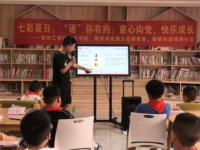 常报全媒体讯 “一心一意!”“异想天开!”……7月24日,在新北区新桥街道锦海社区居民活动教室,一群孩子正在老师的带领下,兴致勃勃地玩成语接龙的游戏,气氛活跃。这位年轻的“小老师”,正是来自常州工学院师范学院“爱心假日学校”的学生志愿者刘吉祥。
