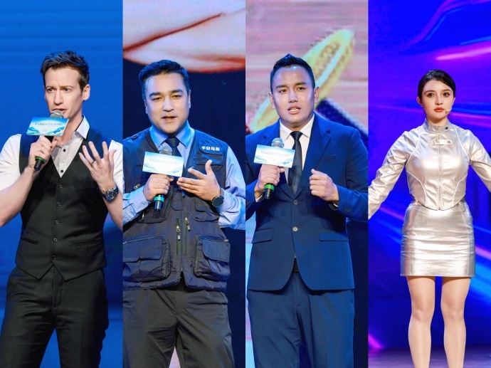 来自澳大利亚的主持人安龙以他在拍摄游历中的深度体验为例,分享了他眼中新疆从自然风光到人文风情的独特魅力;新疆乌苏市公安局民警热合木·热合曼,自媒体博主@馕警官,从自己的工作出发,讲述了如何以鲜活的日常生活为基础,透过“平安乌苏”展现真实、温暖的新疆;新疆和田市技师学院教师伊力哈木·约尔木图拉,博主@哈木老师,从自己的教育日常出发,讲述了如何通过短视频帮助职校学生找到自信、点亮梦想,在传递新疆烟火气的同时照亮孩子们的未来。来自南京师范大学新闻与传播学院、地理科学学院的师生们以《从游牧迁徙到影像记录》为题,讲述了他们赴新疆开展专业实践的故事,分享了多年来他们和新疆的深厚友谊。特别来宾“机器人”AI莎莎,透过与现场的趣味互动,让观众对新疆有了更多了解和认识。