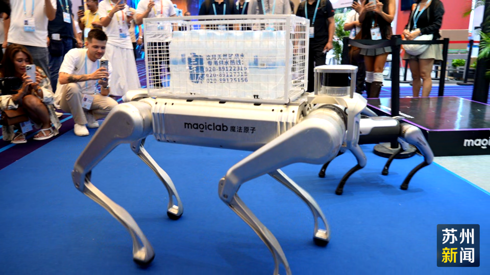 魔法原子公关部工作人员陈栋介绍,新品MagicdogY1定位为工业级四足机器人,可完成日常巡检、消防勘察等任务。目前已有众多意向客户咨询该产品,不少老客户也专程前来了解。