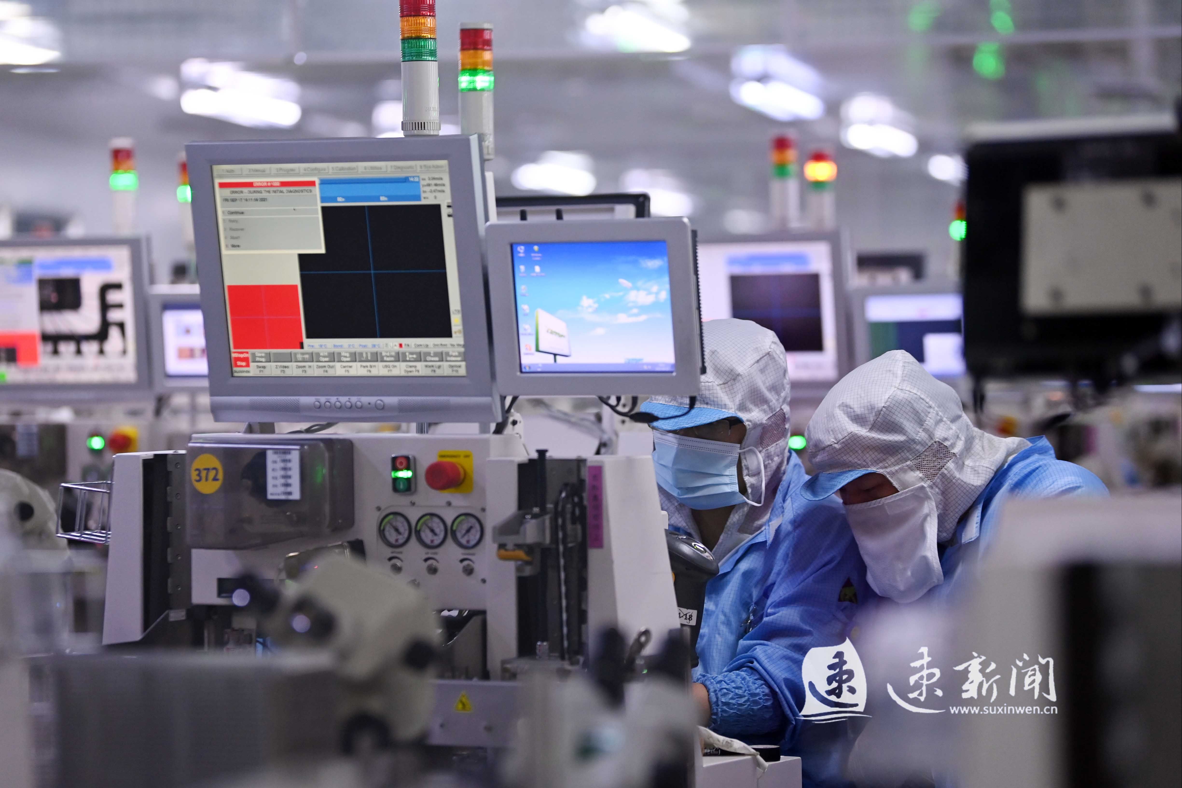 9月18日下午,记者一行来到位于苏宿工业园区的长电科技(宿迁)有限公司[以下简称长电(宿迁)]。走进生产车间,只见一排排整齐的精密机器正在快速地挥舞着机械臂,高速运转着,发出“嗡嗡”的响声,身着防静电连体服的技术人员,不时在液晶显示器上进行操作……
