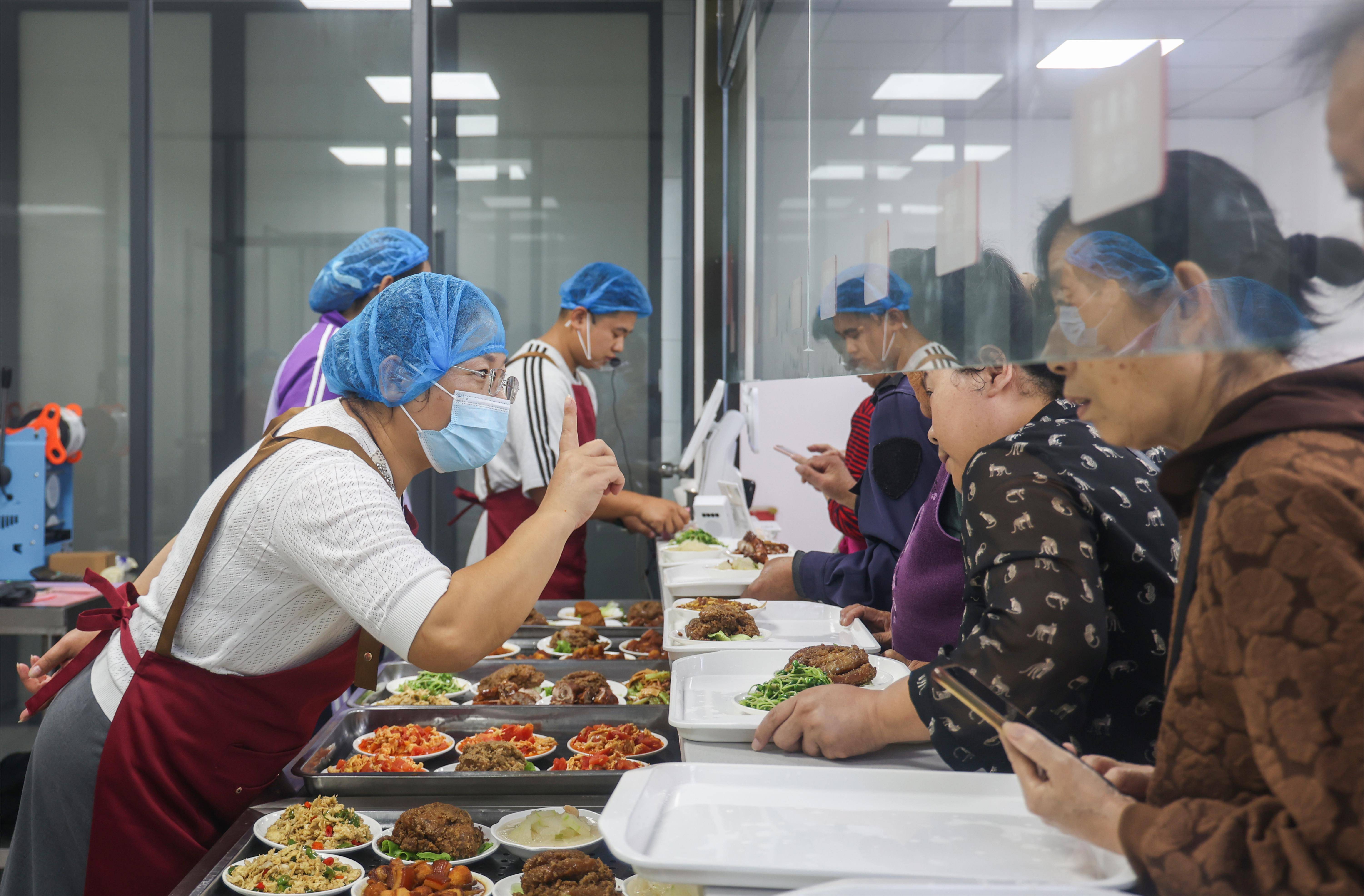 每天中午,鼓楼区牌楼街道长者食堂内都会排起长队。副总经理张会经常来到餐厅帮着分发餐食,忙得不可开交。而就在一个月前,她还是大福源幼儿园的园长,至今微信昵称中的“幼儿园”三个字还没舍得改。