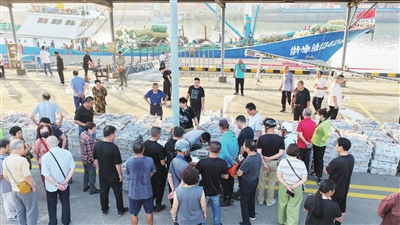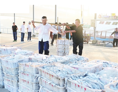 昨天,浏河渔港渔船正在卸载刚刚捕捞的海鲜。渔港码头各类新鲜海产品琳琅满目,吸引了不少商贩和市民前来购买。记者 计海新 摄