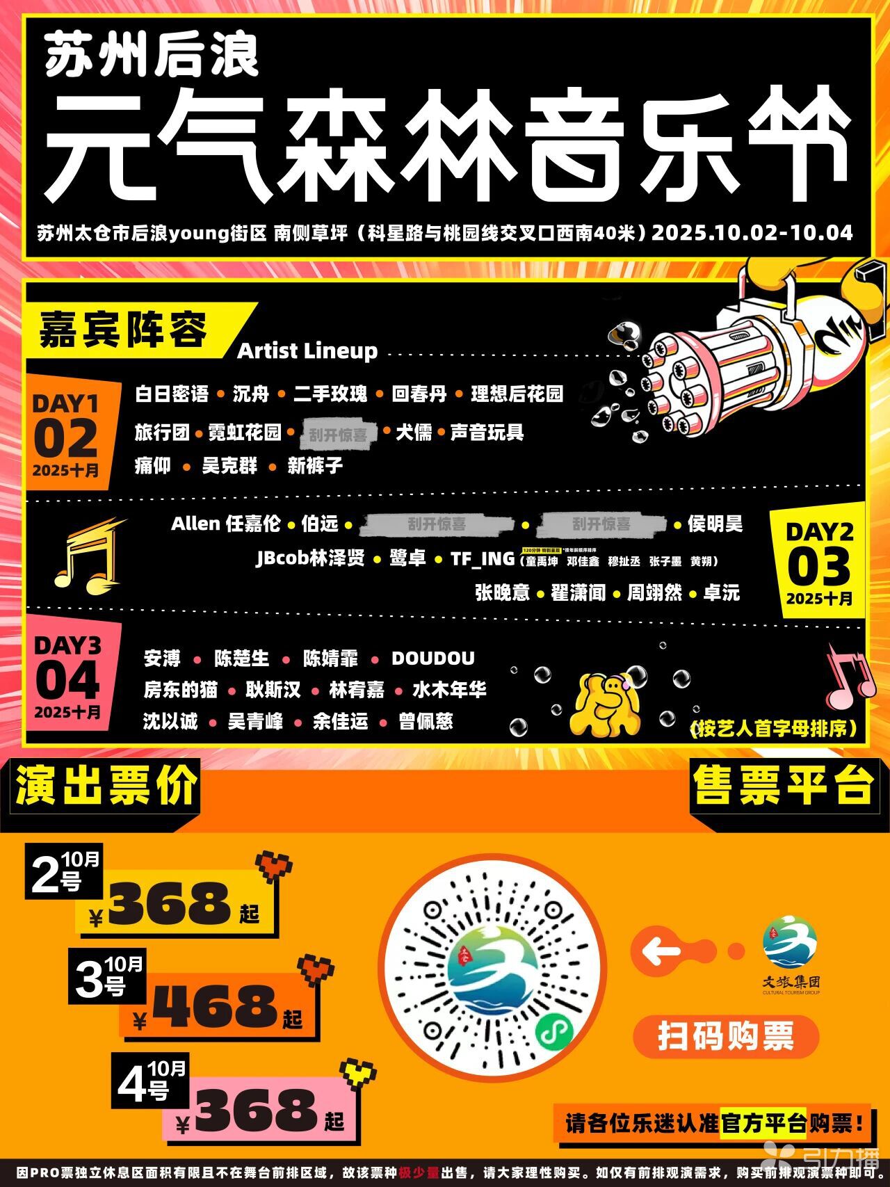 国庆期间,苏州后浪元气森林音乐节将在太仓盛大开唱。为吸引广大乐迷国庆深度游玩,太仓推出“一票通享·优惠全城”联合促销活动。国庆音乐节期间到10月底,凭音乐节任意日期票根(电子凭证),即可享推出重点景区、酒店、民宿、餐饮、商圈专属折扣。