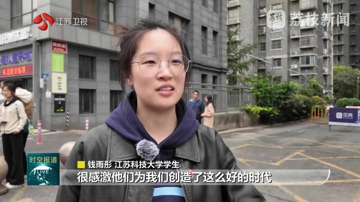 江苏科技大学学生钱雨彤说:“很感激他们为我们创造了这么好的时代,我们也会好好学习,建设更好的国家。”