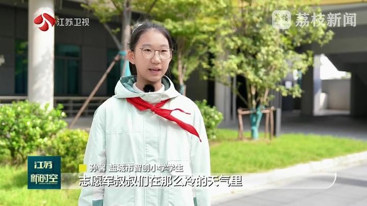 盐城市智创小学学生孙馨说:“志愿军叔叔们在那么冷的天气里,还在拼命战斗。他们不是不怕冷、不怕疼,而是心里装着国家和未来。”