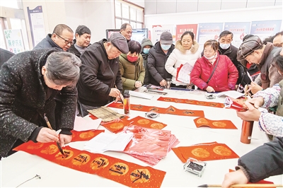 1月10日,江苏省篆刻研究会理事、苏州市书法家协会副秘书长许晨曦等书法名家,来到沙溪镇开展写春联、送祝福活动。据了解,这些苏州书法家已经连续9年为沙溪老百姓书写春联。