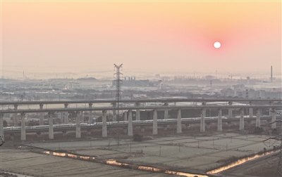 上图为一列动车从我市境内的沪苏通铁路驶过。