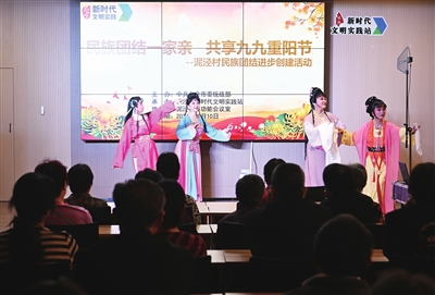 昨天,文艺戏曲爱好者来到双凤镇泥泾村,开展“九九重阳节送戏进乡村”活动,为村民表演越剧、沪剧、黄梅戏等的精彩文艺曲目,并向老人送上重阳糕、长寿面等慰问品。