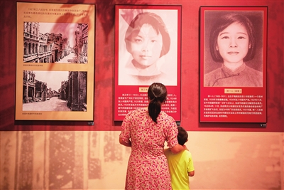 10月2日,家长带着孩子在海南省琼海市红色娘子军纪念园参观。