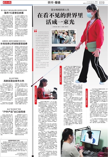 她告诉记者,如今,正有越来越多盲人通过自己的努力,不断打破盲人群体与普通人群之间的那道无形壁垒。除了传统按摩行业,不少盲人也开始进入更广阔的专业领域。“我认识的朋友里有做读屏软件客服的,有做小程序开发的,有做AI语音标注的。音乐专业出身的,有人从事声乐教学、笛子演奏等。”而梅暄想做的,是通过自己的工作和vlog分享,让更多人发现视障者身上的闪光点,“只要有机会,我们也想为这个社会的发展添一份力。”